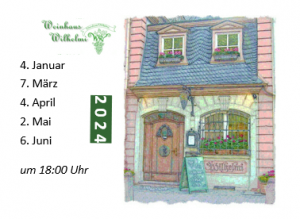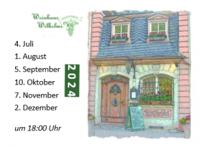 Die Mainzer Volksbühne lädt jeden ersten Donnerstag im Monat um 18 Uhr in das “Weinhaus Wilhelmi”, Rheinstraße 53 in Mainz, ein. Gäste sind jederzeit herzlich willkommen. Abweichende Termine sind rot markiert.